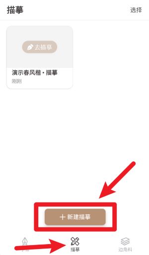 3、点击下方描摹菜单并选择新建描摹按钮,可创建新的描摹练习项目以便反复练习。