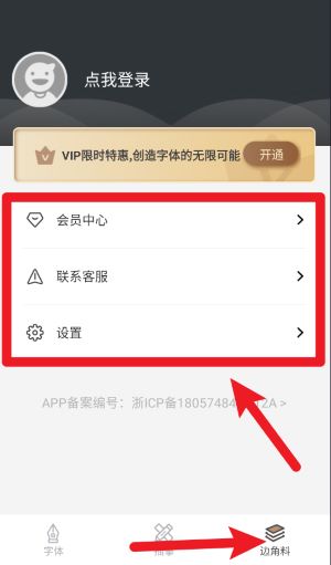 4、点击边角料菜单可进入设置界面,用户可访问会员中心、联系客服或进入设置进行相关操作。
