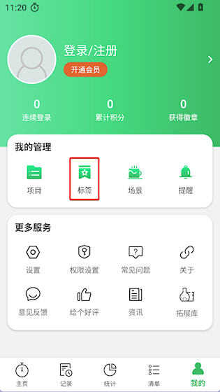 1、进入“我的”界面,点击【标签】添加标签