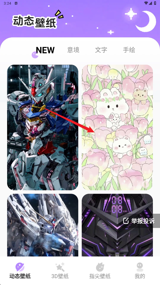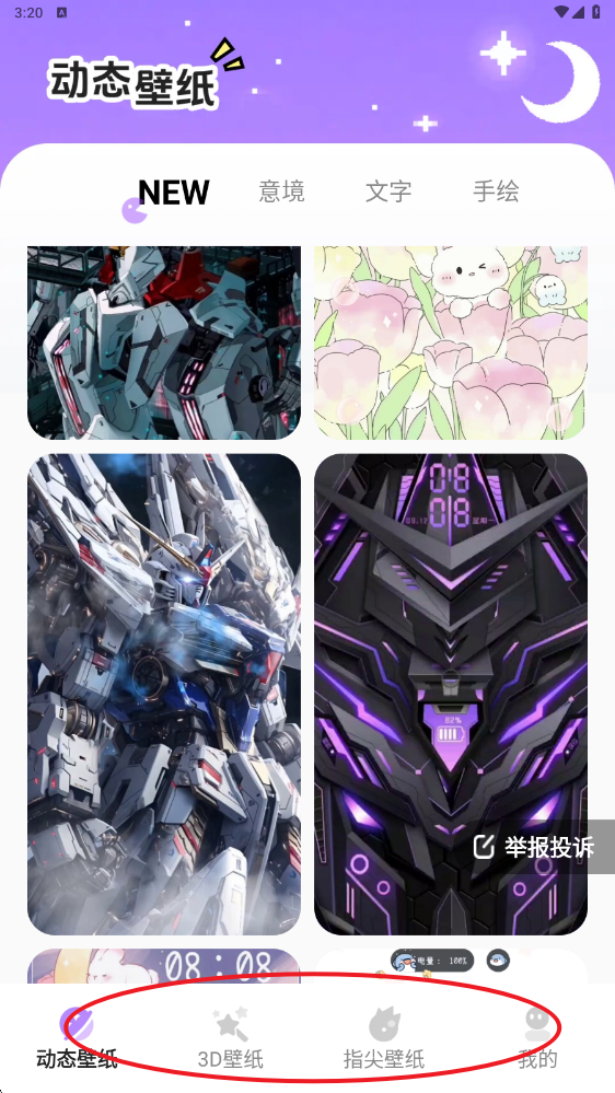 2、首页呈现动态壁纸、3D壁纸、指尖壁纸等多个板块;