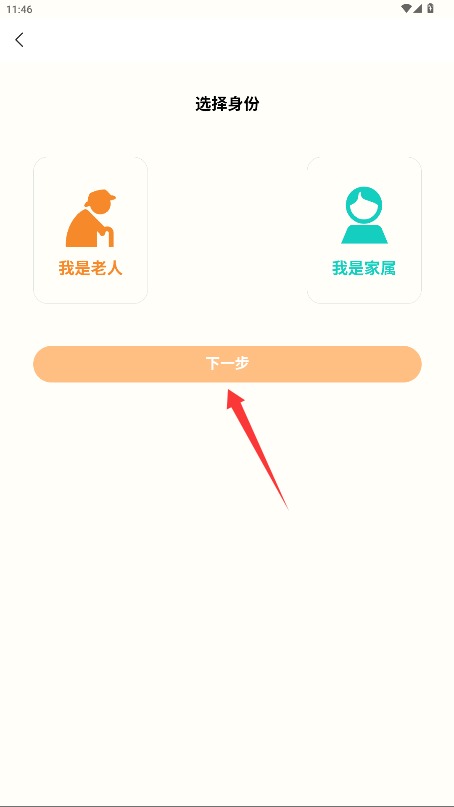 3、根据实际使用的需求选择老人或家属身份类型,进入对应功能操作界面。