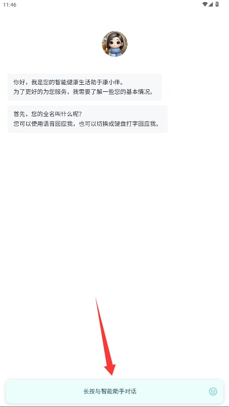 4、长按语音功能键与智能助手对话交流,或输入文字咨询问题,获取专业健康建议回复。