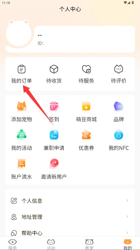3、进入个人中心主界面选择我的订单功能模块,查看全部购买记录详细信息。