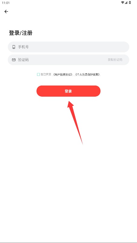 2、在登录页面输入手机号和验证码,勾选同意隐私政策后点击登录进入应用。