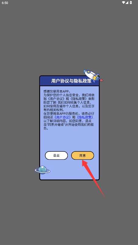 1、初次使用需阅读平台服务条款与隐私政策,确认后点击同意按钮进入应用。