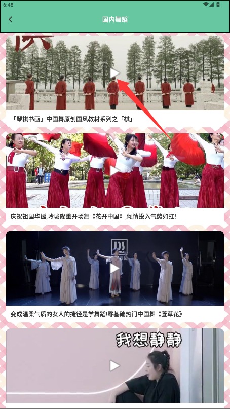 3、在详细视频列表中选择感兴趣的舞蹈视频,点击进入视频播放主页面开始学习。