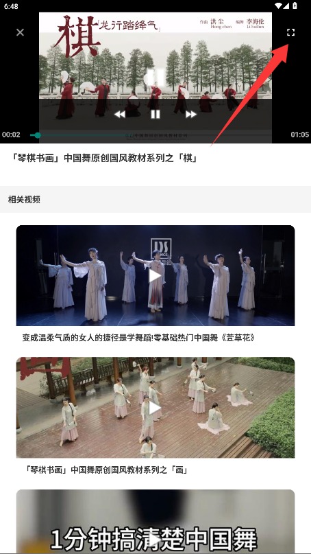 4、点击播放器右上角全屏显示按钮,即可放大全屏观看高清舞蹈教学视频内容。