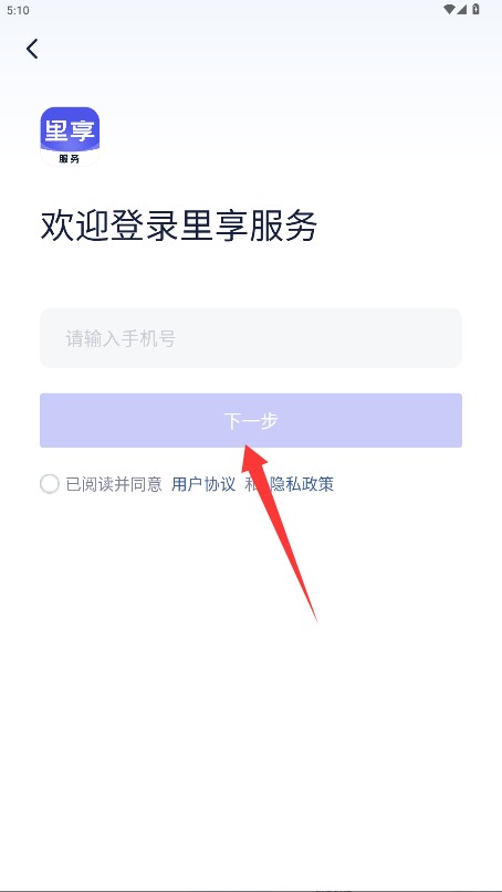 2、进入登录界面输入手机号,勾选同意下协议后点击下一步获取验证码输入登录账号。