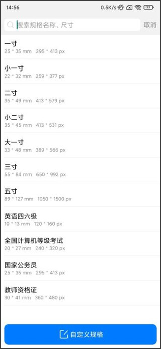 2、涵盖一寸、小一寸、二寸等多种证件照尺寸;