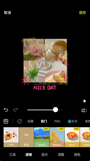 2、微调滤镜强度:不要直接套用默认效果,可滑动调节滤镜的浓淡程度,找到最贴近实物又略带美感的平衡点。