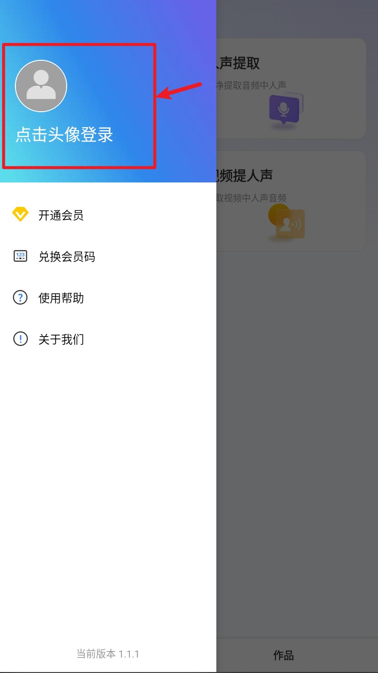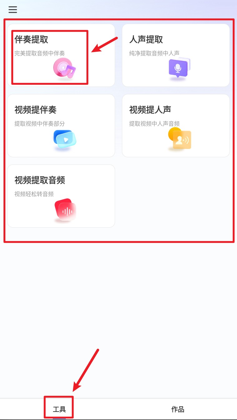 3. 登录后点击下方工具标签页,进入功能面板选择伴奏提取功能模块。