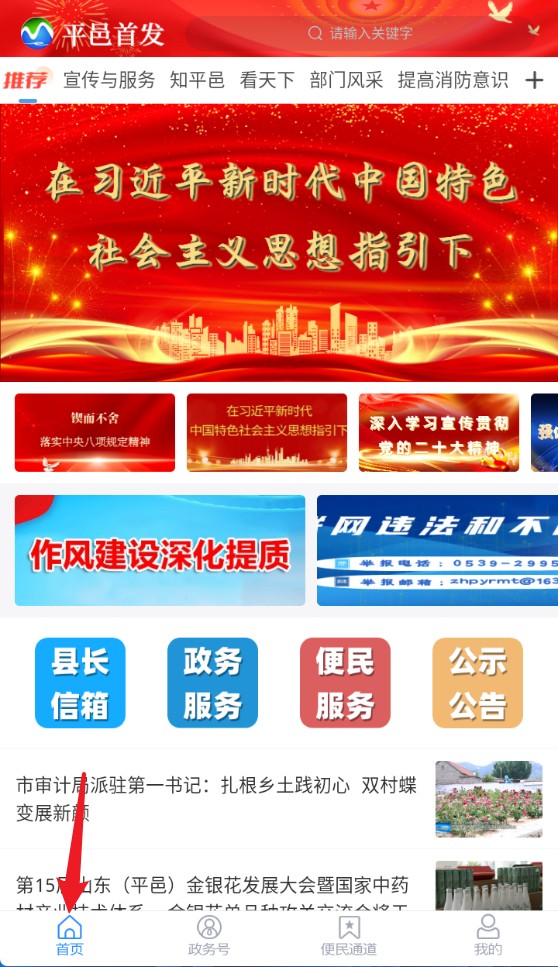 1.打开APP之后,首页展示最新政务资讯和便民服务入口。
