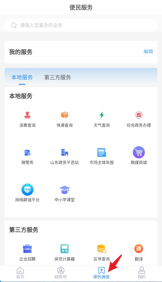 3.进入便民通道,快速访问社保、公积金、交通等生活服务。