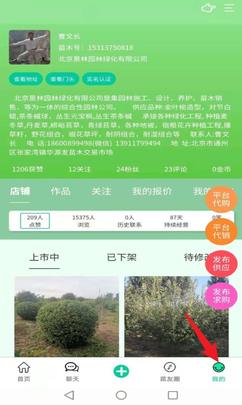 4、买卖交易信息推送大厅:实时推送苗木、资材等供需信息与交易数据。