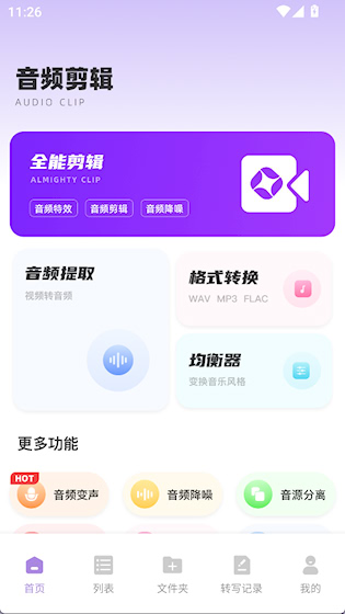1、首页有剪辑、提取、格式转换等多种音频处理功能