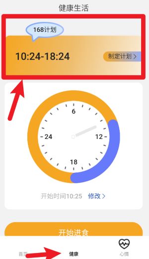 3、进入健康模块后,可设置168间歇性断食计划,明确每日进食与禁食时间段。