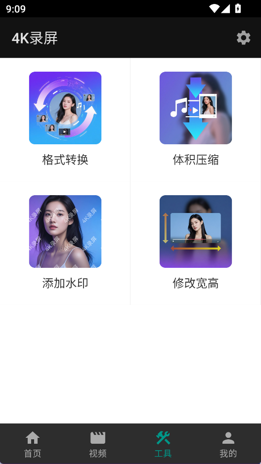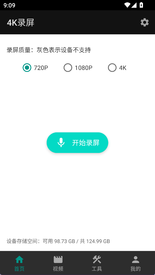 1、首页提供一键录屏功能,可以选择不同分辨率