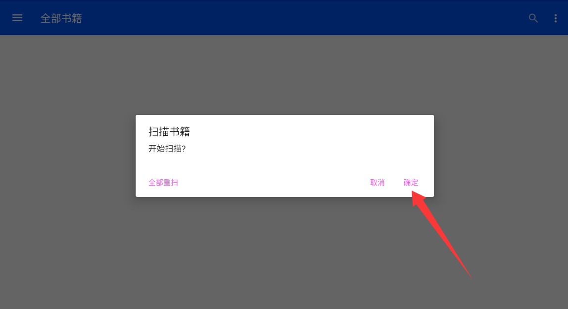 3、选择扫描书籍功能后,系统会自动查找设备中的电子书文件,选中要阅读的书籍点击确定即可导入。