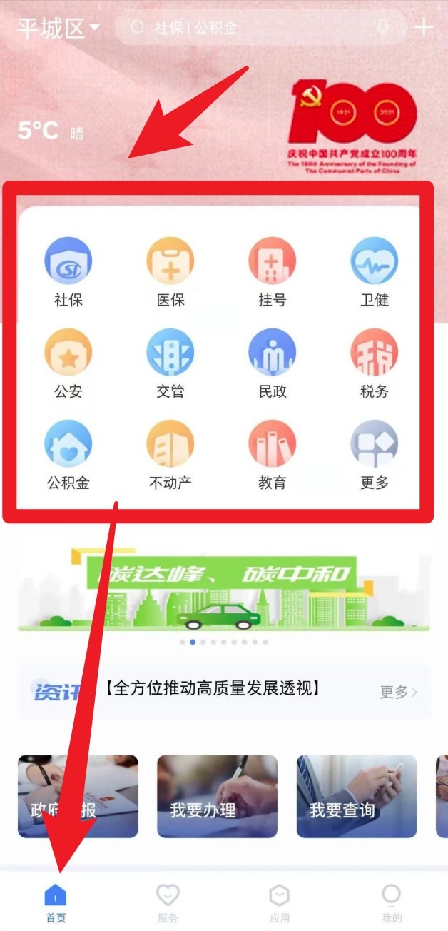2、多项民生查询: 集成社保、公积金、公交、交通违章等高频民生事项查询功能。