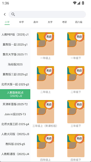 2、教材资源全面:包含多个教育阶段和考试类型的词汇内容,能按课本章节选择学习。
