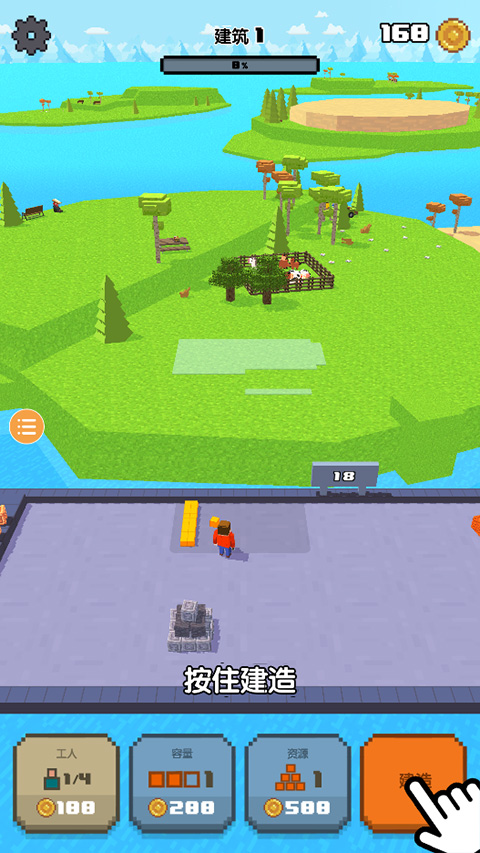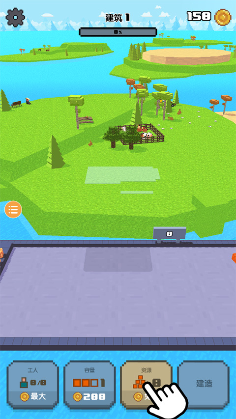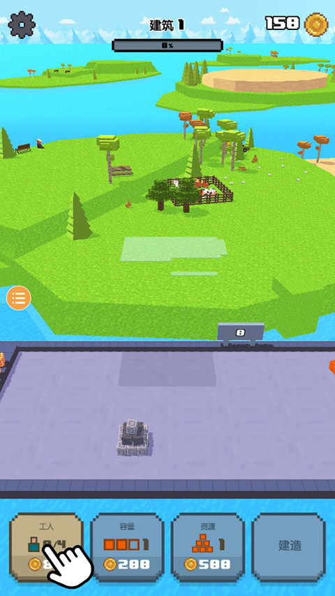 2、资源获取后就点击工人,来招募工人来使用资源开发小岛