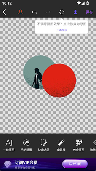 Knockout智能抠图P图是一款图像处理工具,能快速精准地将图片主体与背景分离,通过先进的图像识别技术,实现一键自动抠图,面对头发丝等复杂细节也能保持边缘自然流畅,集成了丰富的编辑选项,满足多样化创作需求,是实用又高效的掌上修图助手。
