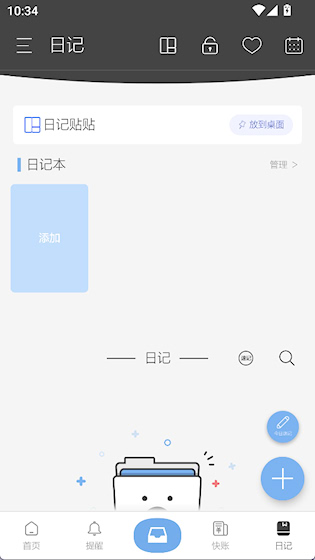 3、日记界面能创建多个日记本,记录不同类型的事项