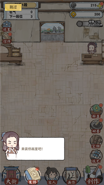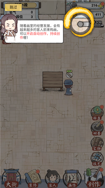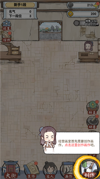 1、进入游戏后,你将需要经营一家画室,而经营画室首先需要创作画作,点击右下角创作画作。