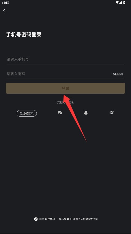 1、在登录页面输入手机号和密码,勾选同意平台相关协议后点击登录进入应用。