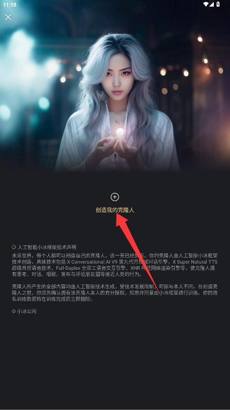 3、仔细阅读克隆人使用协议和注意事项,确认后点击创造我的克隆人按钮继续操作。