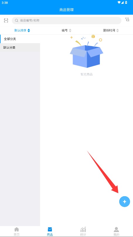 3、进入商品管理功能主页面,点击右下角新增商品功能按钮开始添加商品操作。