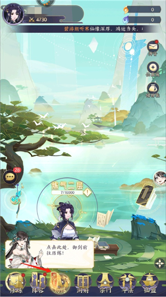 7、之后正式进入游戏,我们点击历练,开启自己的修仙之路。