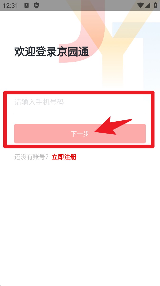 1. 登录页面输入手机号后点击下一步,已有账号可直接登录,未注册用户可点下方立即注册。