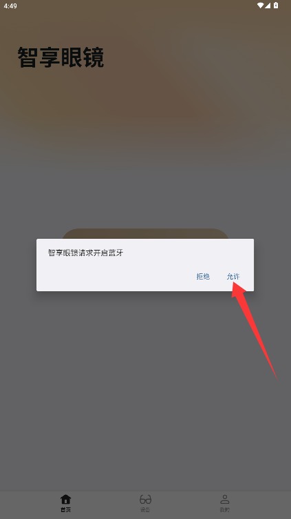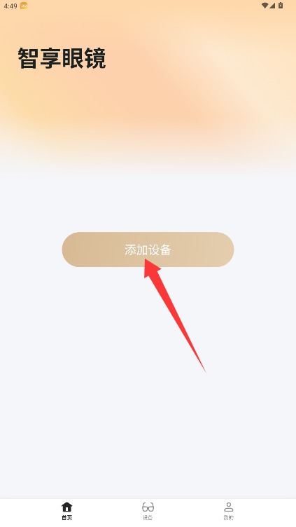 4、在设备管理界面点击添加设备选项,按照指引完成智能眼镜的蓝牙配对连接。