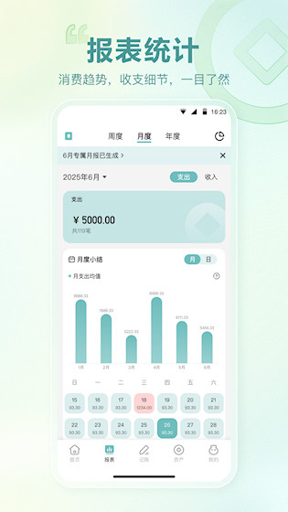 4、记账日历:以日历形式展示每日收支明细,方便用户快速查找某天的消费记录,也便于补记遗漏账单。