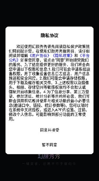 2、首次打开会弹出用户协议提示,阅读完毕选择同意,即可继续使用;
