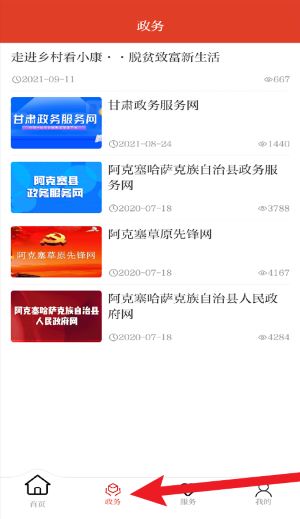 2、点击底部菜单中的政务按钮,可查看本地政务服务网、政府官网等权威信息入口。