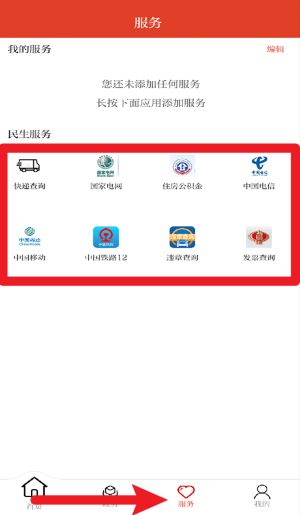3、在服务页面中可查询快递、电费、住房公积金等民生服务,操作便捷内容实用。