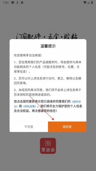 1、点击【我同意】享当当商城的《服务协议》与《隐私政策》,即可进入应用开展后续操作。