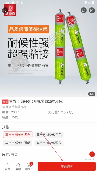 4、在商品详情页选定规格后,点击【登录购买】,完成登录后即可继续推进购买流程。