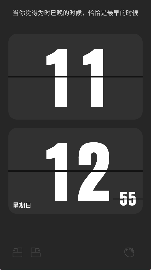 1、翻页时钟显示:采用动态翻页效果展示当前时间,视觉清晰且富有动感,可作为桌面或屏保使用,增强时间感知体验。