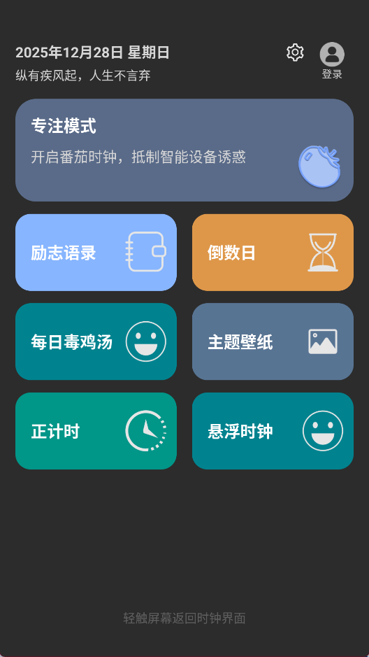嘀嗒时钟是一款时间管理工具,用桌面翻页时钟作为主要视觉特色,可以设置翻页提醒、开启翻页声,带来个性化的时间查看体验,融合了专注计时、倒计时提醒等实用特性,帮助使用者更有序地安排日常事务,适配多种使用习惯和场景。