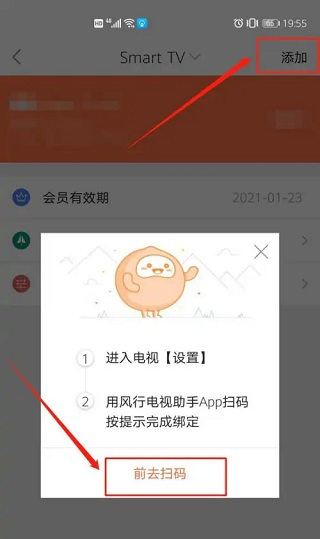 3、点击页面右上角添加按钮,选择“前去扫码”功能;