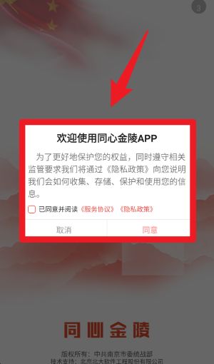 1、首次打开APP时,会弹出隐私政策与服务协议确认页面,用户需勾选同意才能继续进入系统使用功能。
