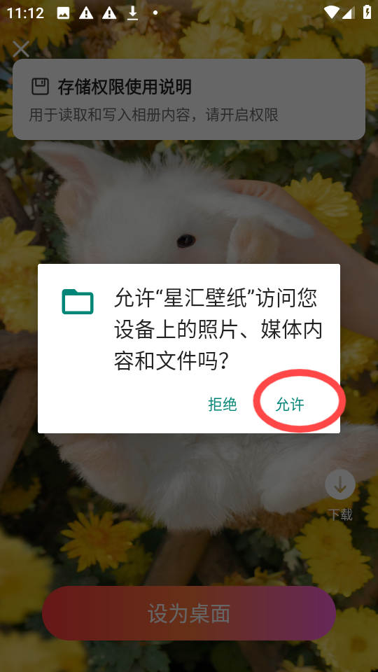 4、首次下载需允许相关权限,授权完成后才能确保下载功能正常运行