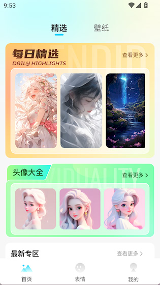 3、头像与表情包专区:除了壁纸外,还提供大量个性化头像和当下流行的聊天表情包,方便用户在社交平台展示独特形象。