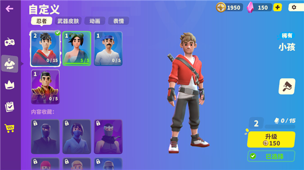 通过游戏进程收集并解锁多种忍者外观,持续使用心仪的造型可提升其等级,从而解锁更华丽的视觉特效与装饰细节,逐步打造独具个性的忍者收藏。