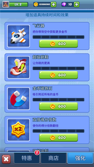 通过连续挑战可解锁并升级多样技能与专属称号,不同技能将提供加速、护盾、磁吸等实用效果,帮助应对更高难度的跑酷路线。