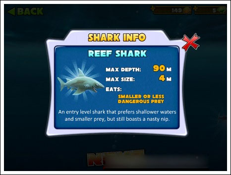 小编推荐:系统默认的鲨鱼,初始血量少,而且速度较慢,会被很多的鱼类攻击,不实用。