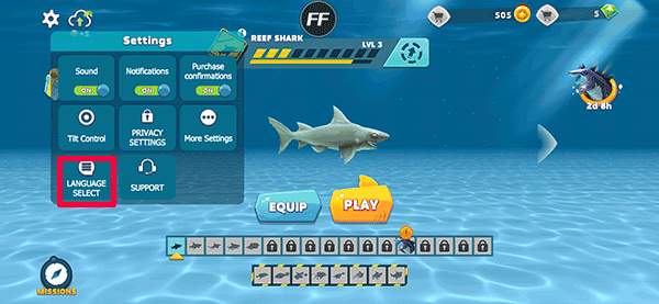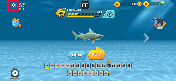1、打开饥饿的鲨鱼进化手机版,在游戏主界面找到并点击左上角的【齿轮】按钮;